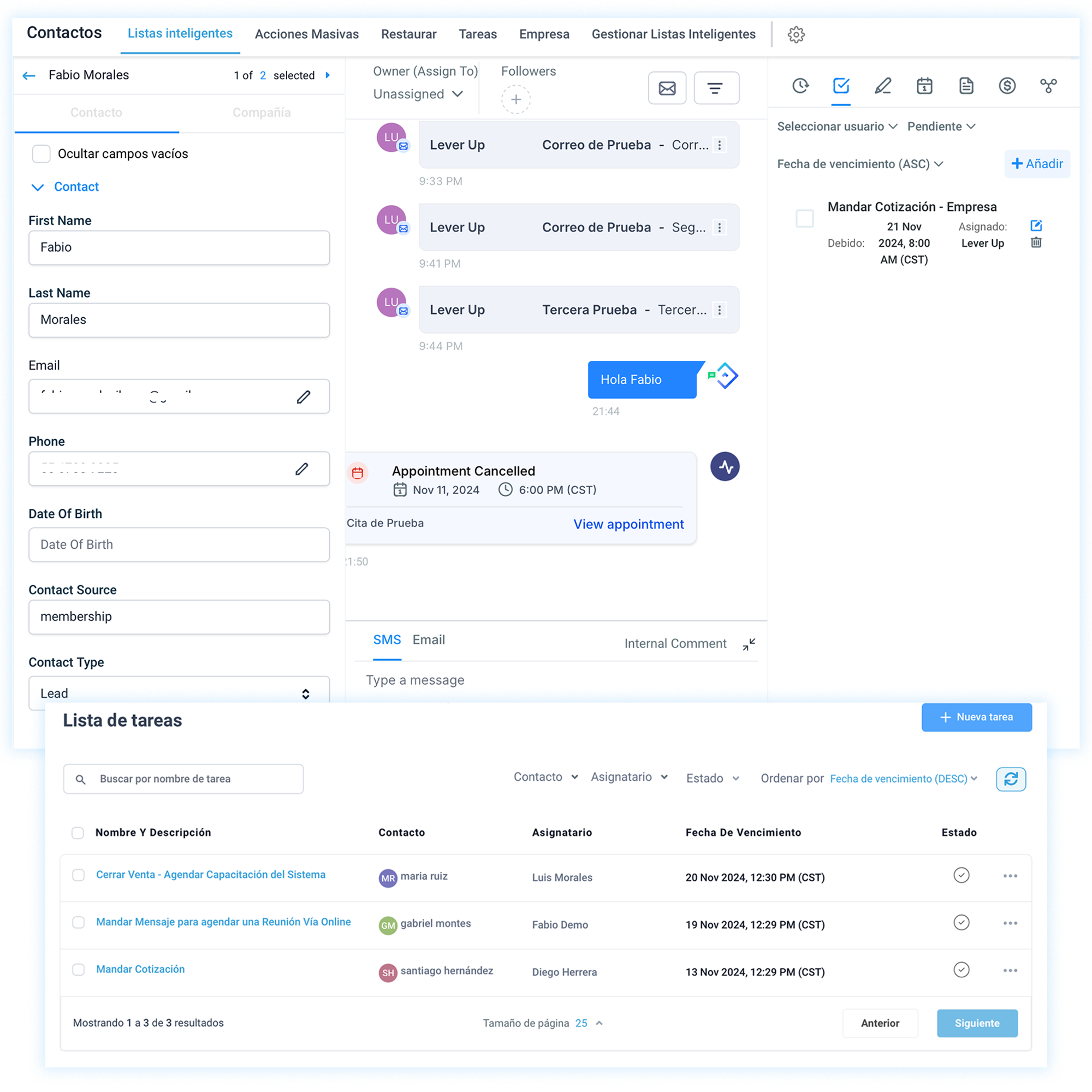 No pierdas de vista ningún pendiente: asigna tareas por contacto, organiza el seguimiento y mantén cada detalle bajo control.
