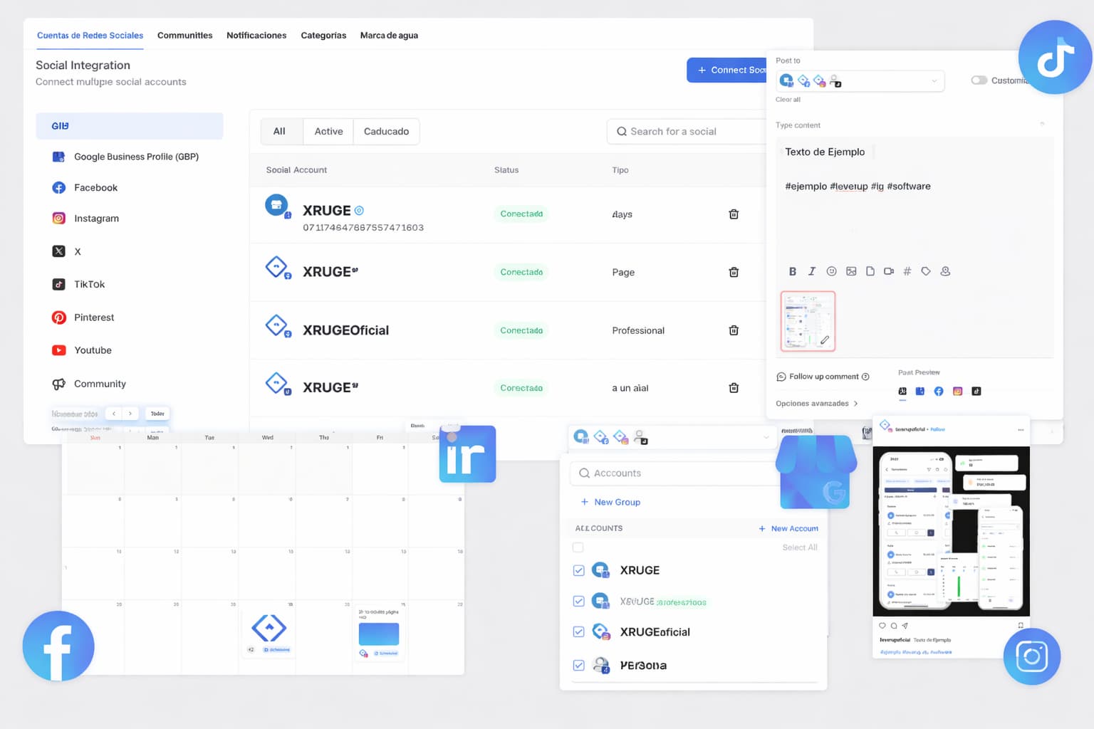 Con el Social Planner de XRUGE, puedes planificar tus contenidos con anticipación, mantener una comunicación constante con tu audiencia y optimizar el tiempo en la gestión de múltiples plataformas como Facebook, Instagram y Google My Business.