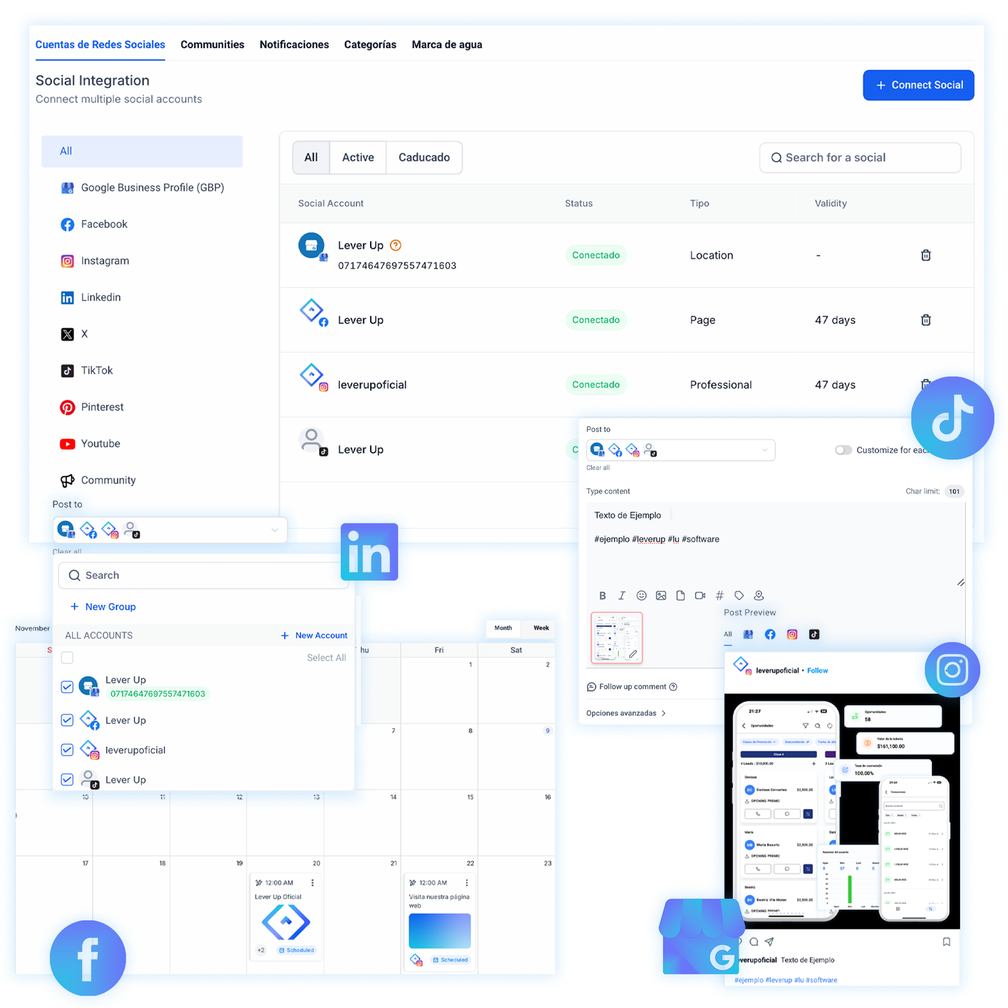 Organiza, programa y gestiona tus publicaciones en redes sociales desde un solo lugar.